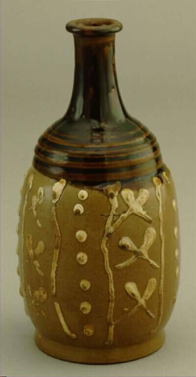 MediumStoneware with slip-trailed design and brown and clear glazes (Koshiwara or Onta ware)