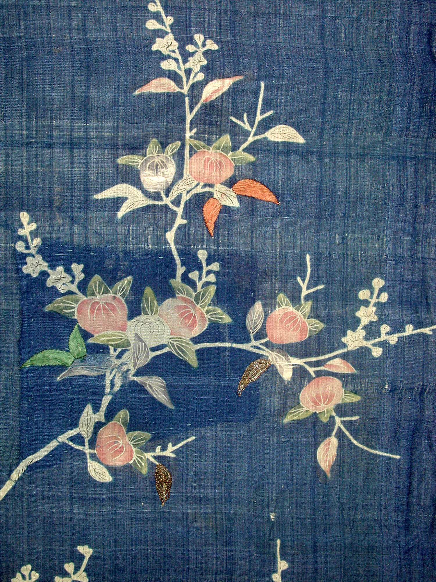 MediumPlain blue silk with yuzen dyeing and gold thread embroidery