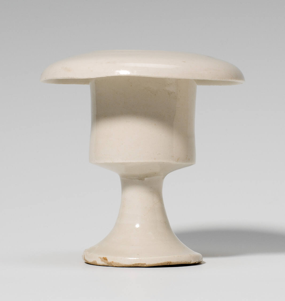 DescriptionSmall white porcelain lamp with flaring base and wide spread lip.
