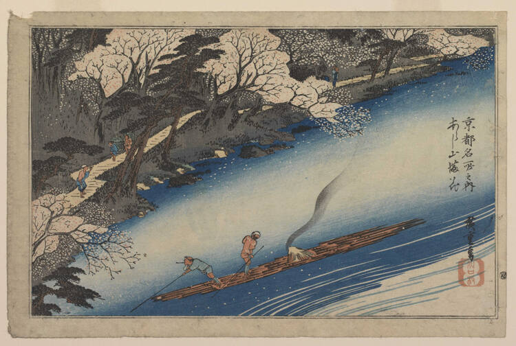Flowers to Frost: Four Seasons in East Asian Art, The Nelson-Atkins Museum of Art, January 18 - July 17, 2016.Ando Hiroshige created images that accentuate historical and poetic aspects of famous places. He is celebrated for imbuing images with seasonal features, reflected here as pink and red foliage, evening mist and snow.