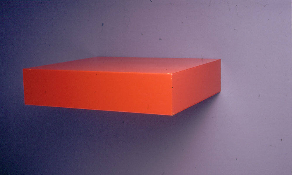 Gallery LabelBorn in nearby Excelsior Springs, Missouri, Donald Judd became a leading force in the international world of art. His studies in philosophy and art history led him to question the relationship between art and objects. His research moved from complex to essential, geometric forms. These shelf-like forms— painted, anodized or burnished metal—were presented alone or in combination with like forms.
