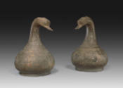 DescriptionPolished black ware jar; the upper part is in the shape of a duck, with an opening in the top of the duck's head and incised eyes and feathers around the face.
