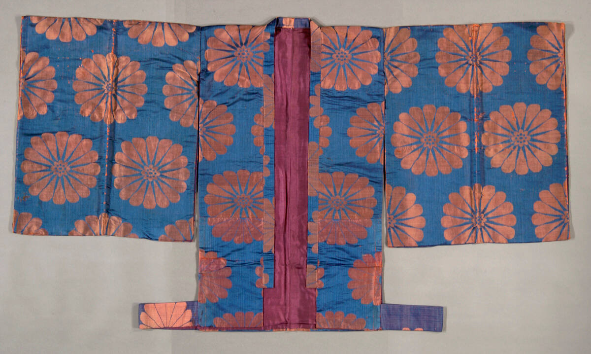 DescriptionNo theater costume (Happi type) with chrysanthemum pattern.