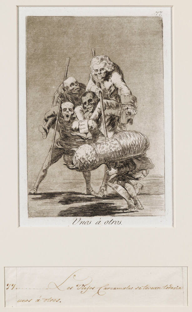 Pierre Gassier and Juliet Wilson-Bareau, The Life and Complete Work of Francisco Goya, 2nd ed. (New York: Harrison House, 1981), no. 607, p. 185, (repro.), as Unos á otros. (One to another).