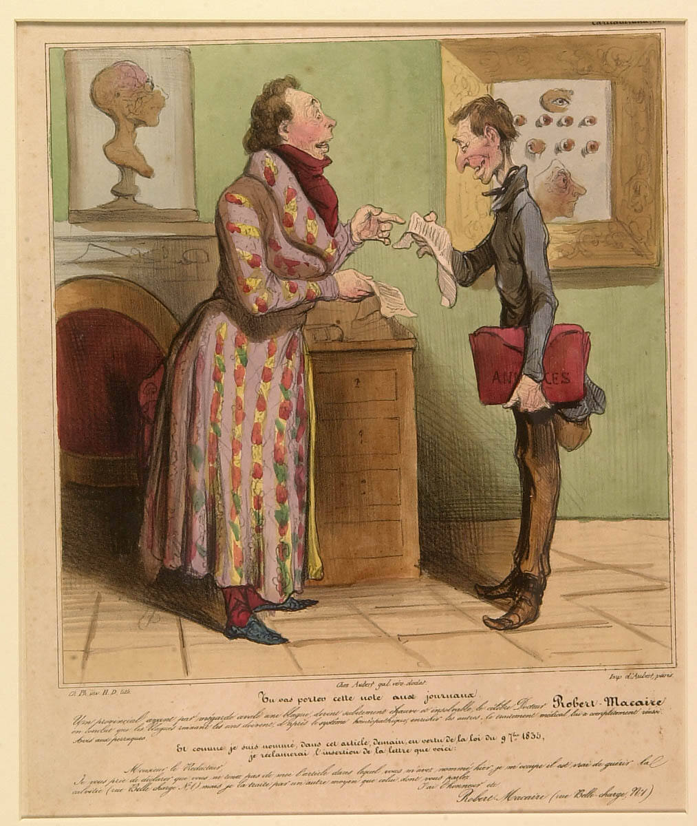 George L. McKenna, Prints, 1460-1995 (Kansas City, MO: Nelson-Atkins Museum of Art, 1996), 295-96, as Caricaturana (Les Cent Robert Macaire): Untitled (You are going to take this note to the newspaper).