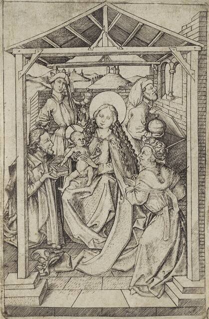[1] According to Max Lehrs, Geschichte und Kritischer Katalog des Deutschen, Niederländischen und Französischen Kupferstichs im XV. Jahrhundert, 11 (Vienna: Gesellschaft für Vervielfältigende Kunst, 1910), 73, this print once bore Franz Rechberger‘s collector’s mark on its verso (Lugt 2133; his name and a date—in this instance, 1804). Rechberger (1771-1841) was an artist, curator of Count Moritz von Fries’s collection from 1797-1820 and Director of the Albertina in Vienna from 1827. His mark is no longer visible on the Nelson-Atkins impression, but according to Dr. Joyce Zelen, Curator of Prints, Rijksmuseum, it was sometimes written in pencil and it is possible it could have been removed at some point. According to Frits Lugt, Les Marques de collections de dessins & d’estampes (1921), online edition by the Fondation Custodia, L. 2133, consulted July 31, 2024, Rechberger’s signature was applied to prints in Count von Fries’s collection, they were not necessarily owned by Rechberger himself. No prints attributed to the Master E.S. or depicting the Adoration of the Magi are listed in the undated (possibly ca. 1845) catalogue of Rechberger’s prints, held by the Kupferstichkabinett, Berlin.