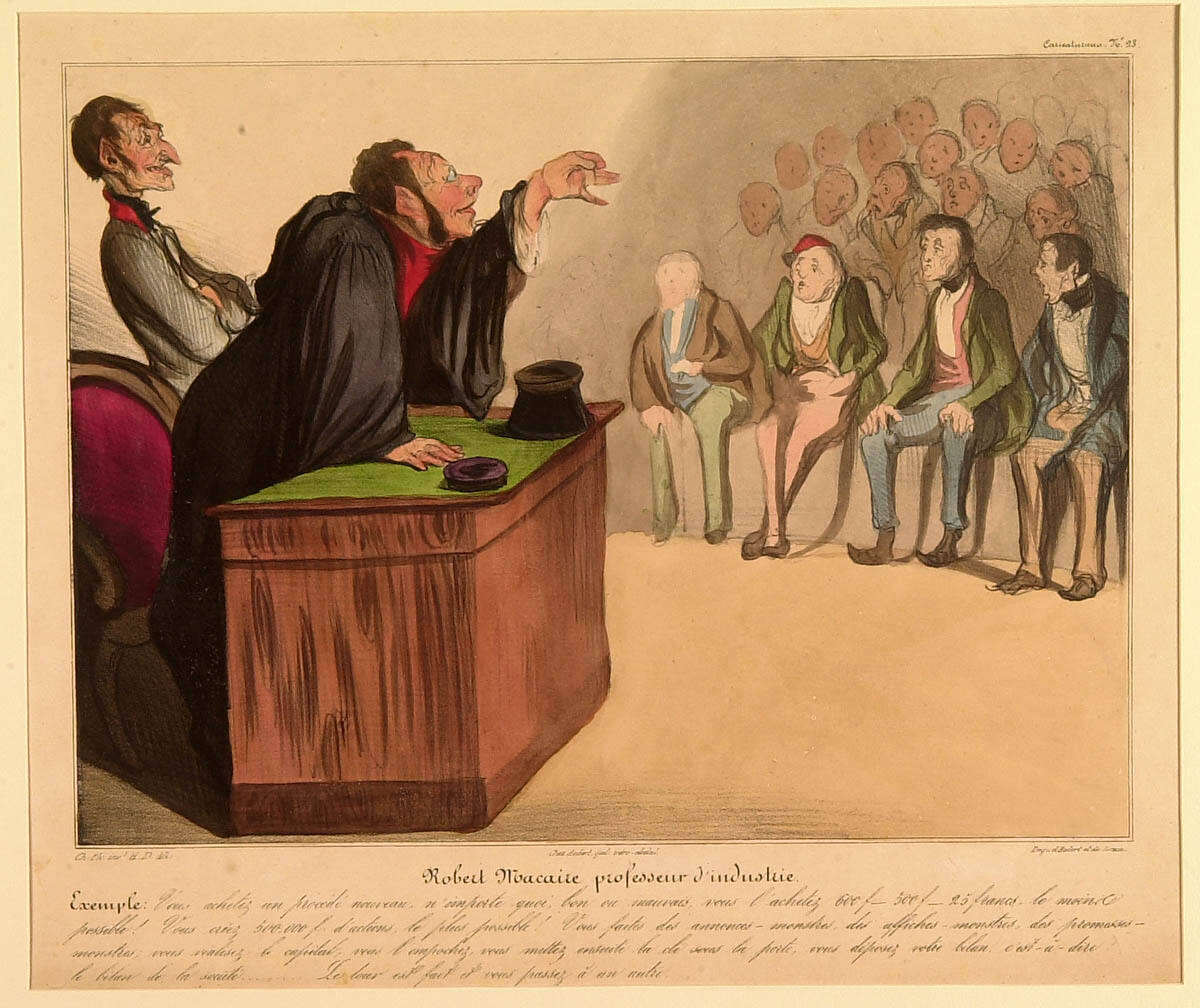 George L. McKenna, Prints, 1460-1995 (Kansas City, MO: Nelson-Atkins Museum of Art, 1996), 295-96, as Caricaturana (Les Cent Robert Macaire): Robert Macaire, Professor of Business.