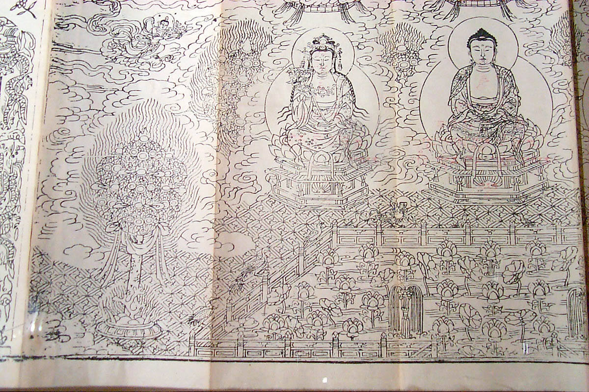 The sutras are the Buddha’s teachings compiled by his disciples. The Lotus has been the most beloved, because it transmits Buddha’s basic teaching that everyone has potential to achieve Buddhahood. It also inspired many themes and personalities in Buddhist art. Completed around the second century c.e., the Lotus has been translated into many languages, including English.