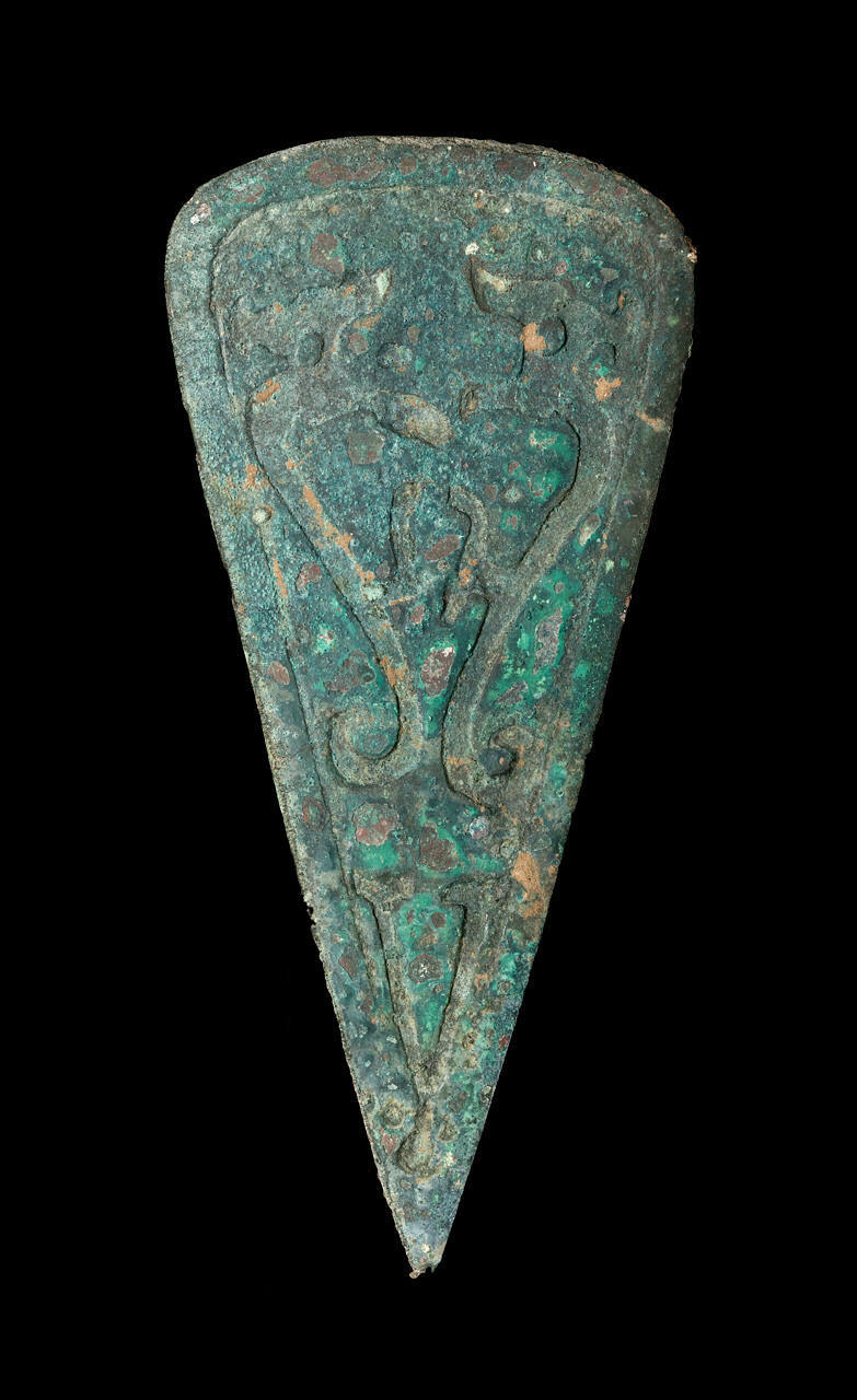DescriptionFlat decoration for chariot, arrow head shape; two dragons in intaglio face each other.ProvenanceT'ang Hsiao Wu, Peiping (modern-day Beijing), China, by March 30, 1934;