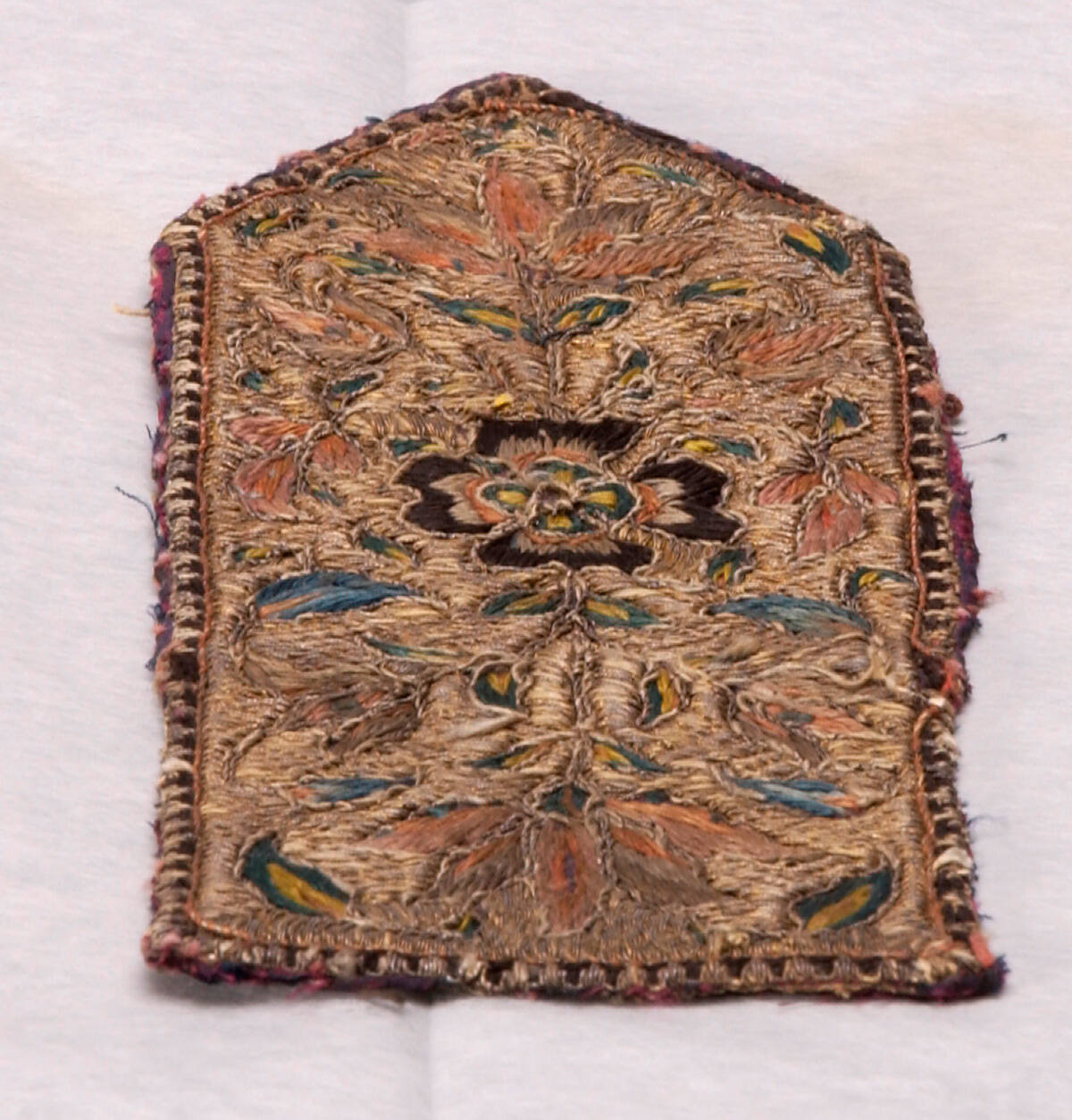 MediumCotton plain weave; embroidered with silk, foil-wrapped silk, and sequins