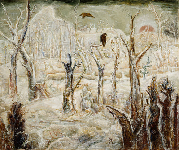Albert Bloch: Ein amerikanischer Blauer Reiter, 1882–1961, Städtische Galerie im Lenbachhaus, Munich, Germany, November 1964–August 1965 (traveled), no. 16 (as Winter in Toten Wald).