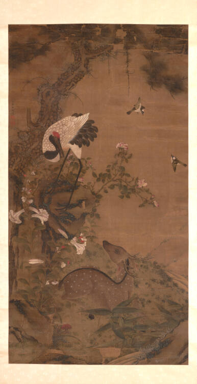 Deer and Crane in Landscape