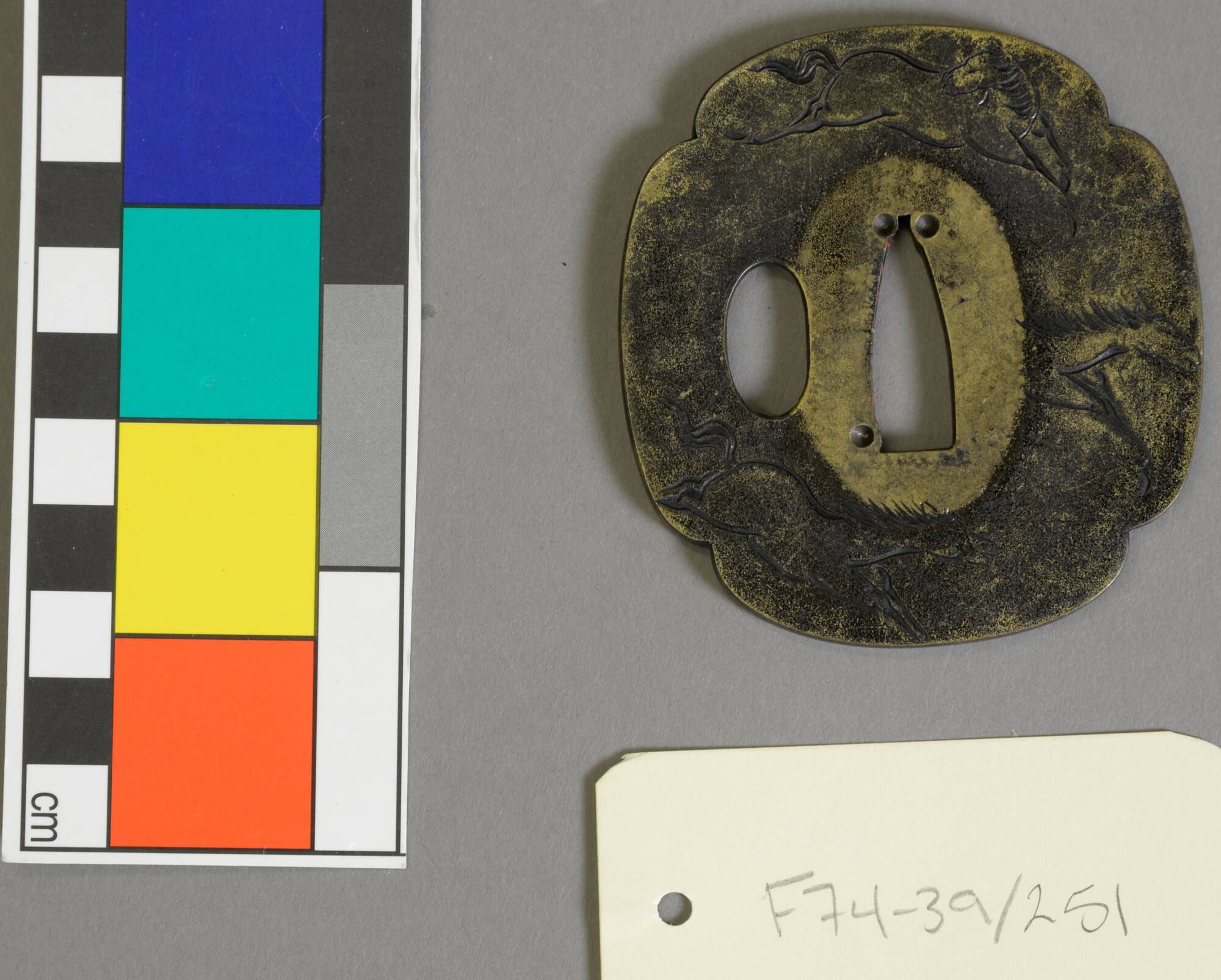 DescriptionEngraved with horse design. Quatrefoil shape.