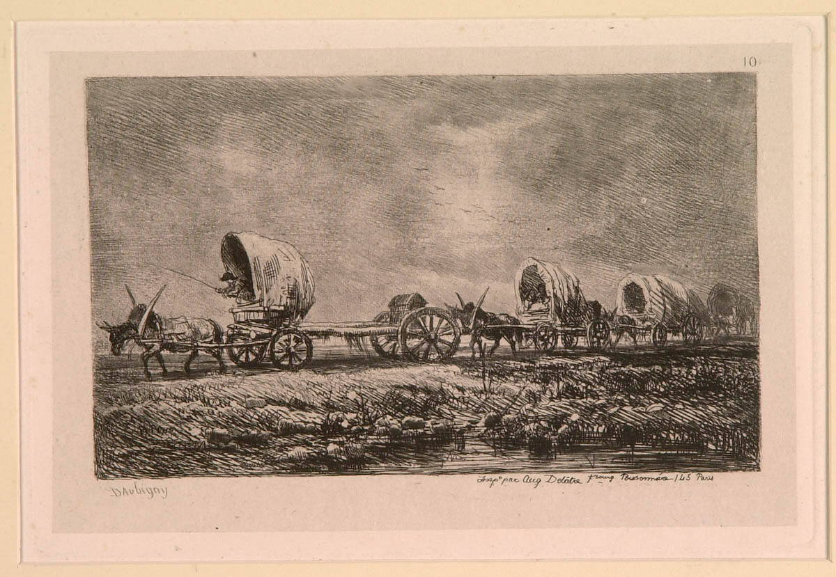 Loys Delteil, Le peintre-graveur illustré, vol. 13, Charles-François Daubigny (Paris: Chez l’Auteur, 1921), no. 76 IV/IV, unpaginated, (repro.), as Les charrettes de Roulage.