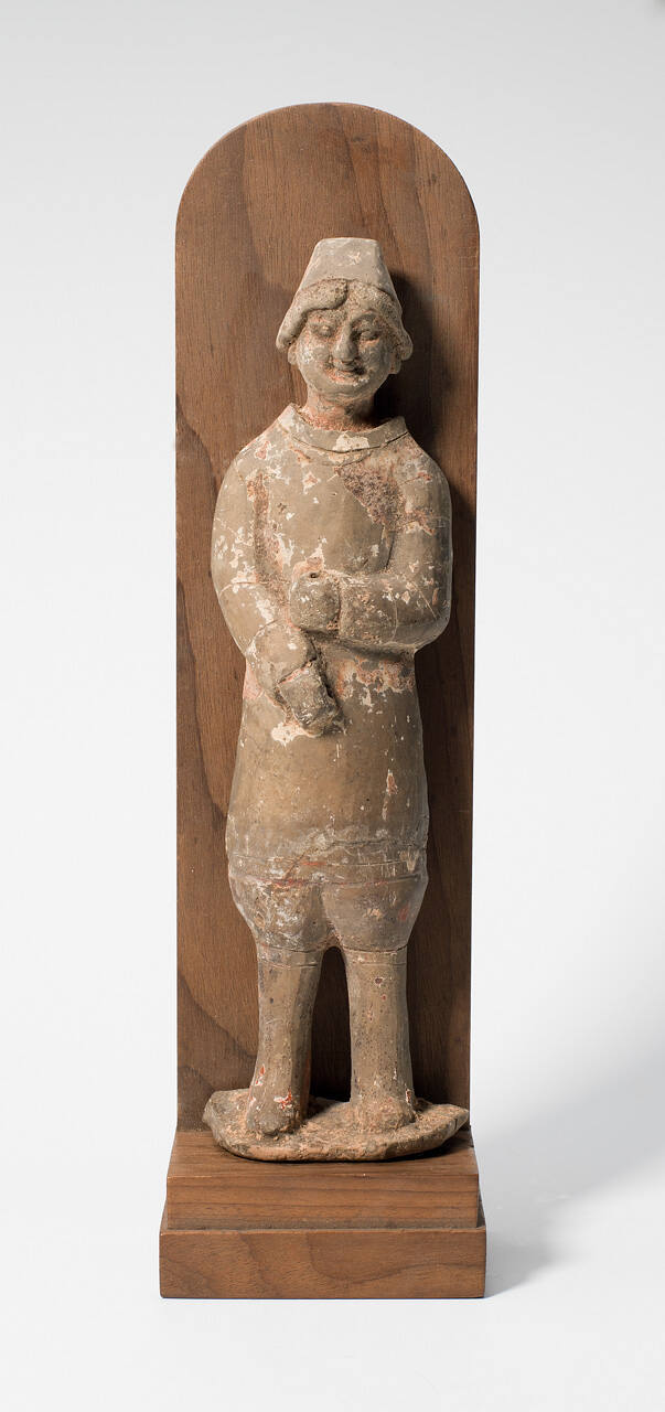DescriptionFigure of a male peasant. Dressed in three-quarter length coat with full length sleeves. Full trousers gathered in at knee. Hair shows beneath small cap.ProvenancePurchased on the Chinese art market, through Laurence Sickman, by The Nelson-Atkins Museum of Art, Kansas City, MO, 1934 [1].