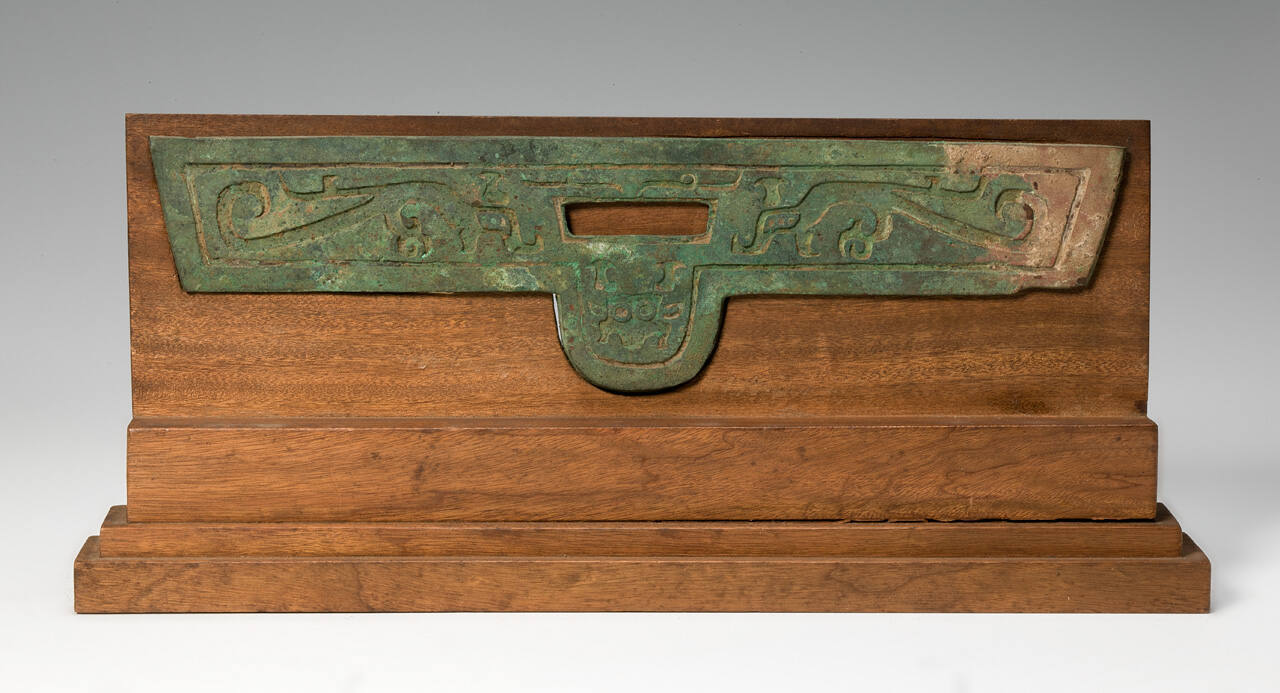 DescriptionFlat decoration with two dragons in intaglio facing each other; below is a Tao T'ieh mask in intaglio; flanges on back for attaching to chariot.ProvenanceT'ang Hsiao Wu, Peiping (modern-day Beijing), China, by March 30, 1934;