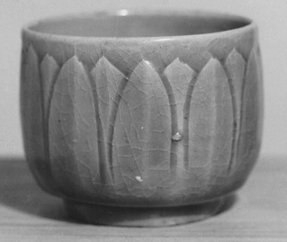 DescriptionCeladon glazed porcelaneous ware with carved design of overlapping petals.