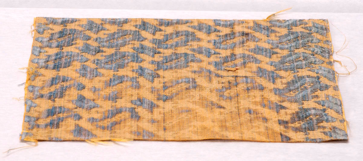 DescriptionFormal diagonal pattern of light-blue on a background of gold.