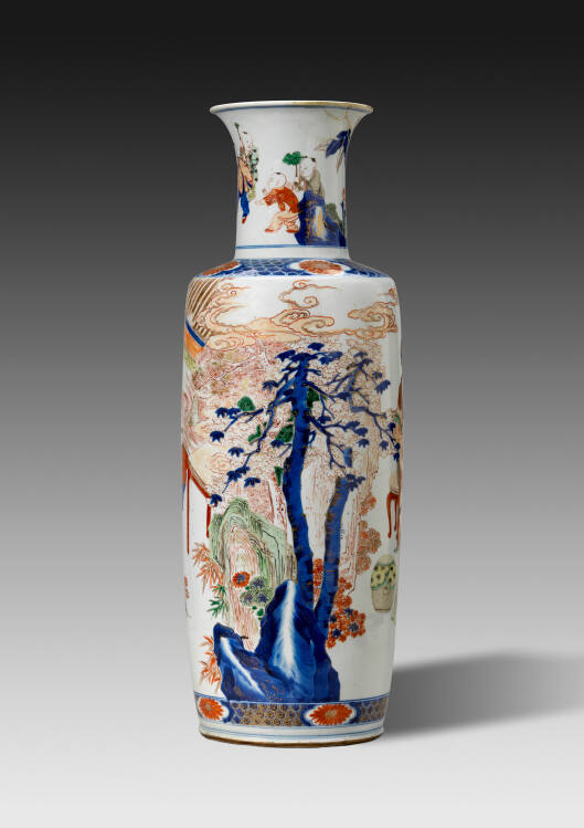 DescriptionFamille verte vase decorated with a group of figures representing a noble family, palaces, garden scenery, etc, in polychrome with under glaze blue. Neck is damaged and restored.ProvenanceWith C. T. Loo & Co., New York, by January 25, 1933 [1];