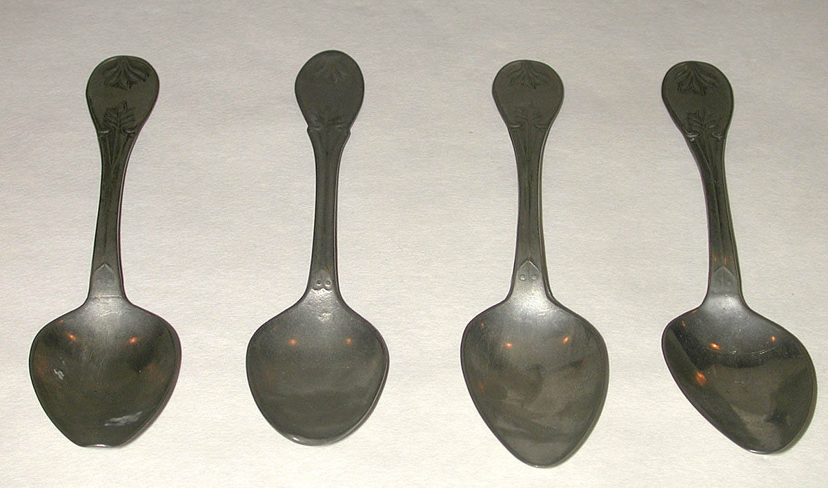 DescriptionStylized spiky plant-form pattern in low relief on both front and back of handles. No marks.