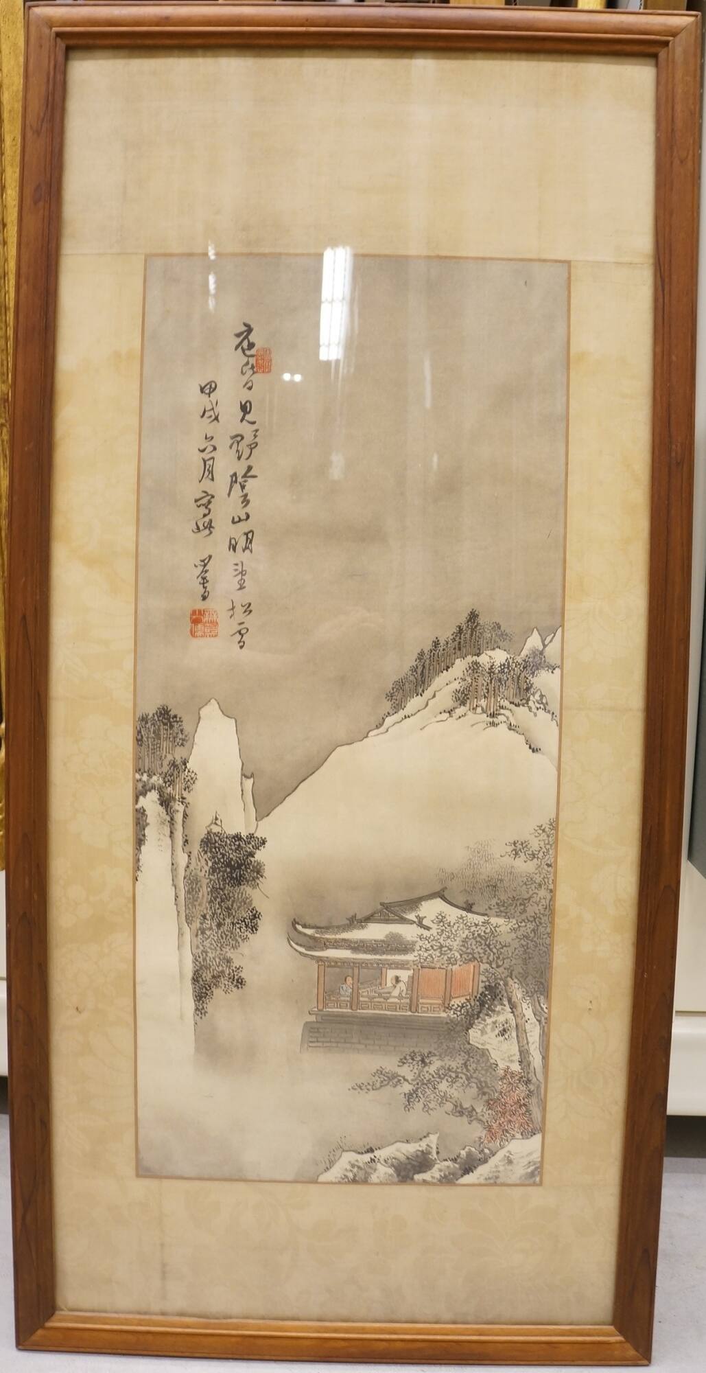 MediumInk and colors on paper; mounted on brocade