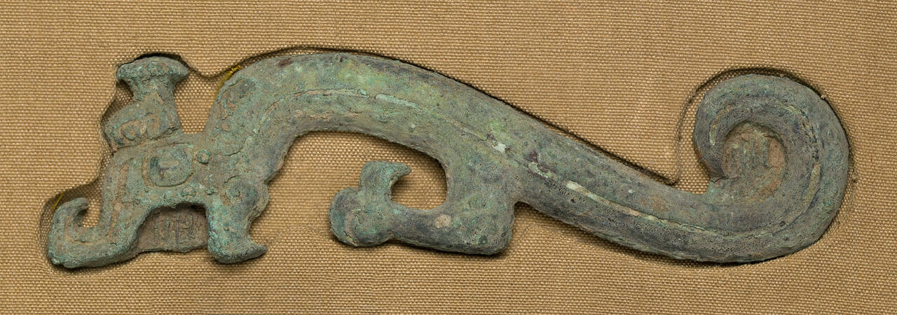 DescriptionHarness or chariot decoration. Formalized dragon, seen in full side view. Line down center of dragon. Green patina.ProvenanceT'ang Hsiao Wu, Peiping (modern-day Beijing), China, by March 30, 1934;