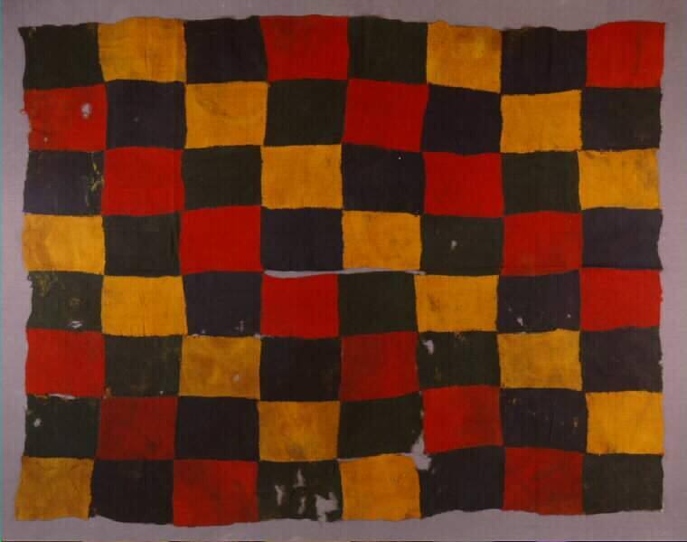 DescriptionChecked tunic in red, ochre, dark green, and dark blue.