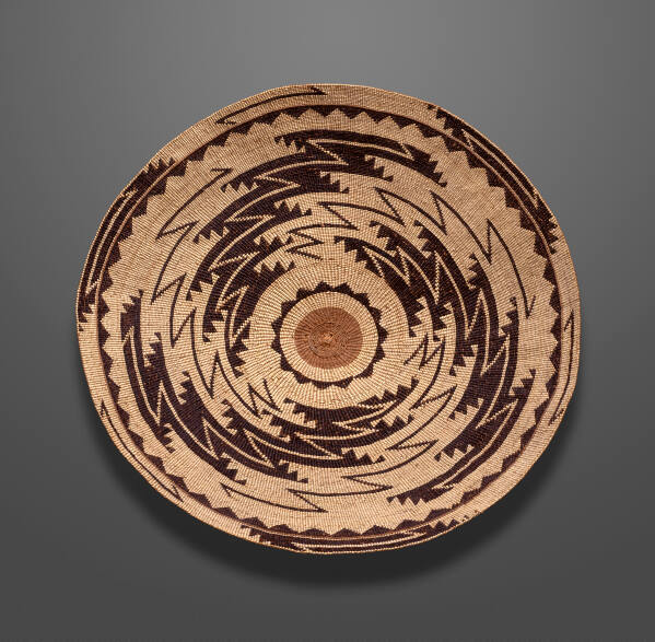 DescriptionThree spiral bands in brown on natural. Small border.