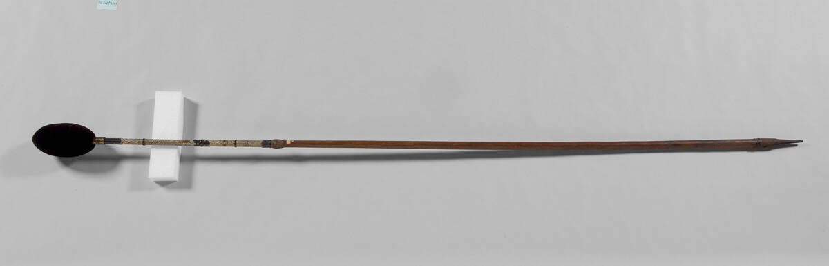MediumOak, ray skin, lacquer and gold powder, shakudo (copper-gold alloy), hemp (asa), gold lacquer, tempered steel with lacquered iron tip, bear fur.