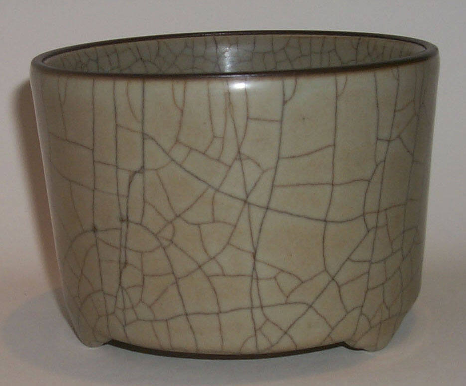 DescriptionHeavy-bodied jar with thick Millet-colored crackled glaze stained black, against a ground of smaller reddish-brown crackle. Dark brown lip. Jar is an imitation of ko-yao ware.ProvenanceWith Otto Burchard, Peiping (modern-day Beijing), China, by 1932;