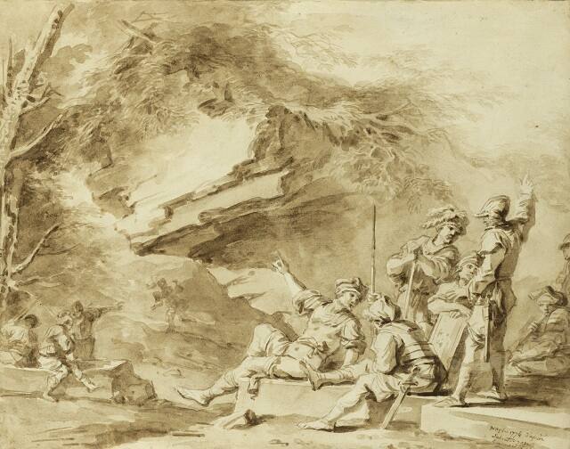 Peter Walch, “Foreign Artists at Naples: 1750-1799,” in “Special Issue Devoted to Neapolitan Art in the Eighteenth Century,” The Burlington Magazine 112, no. 913, (April 1979): 248, 256, (repro.), as Soliders by a Grotto, after Salvator Rosa.
