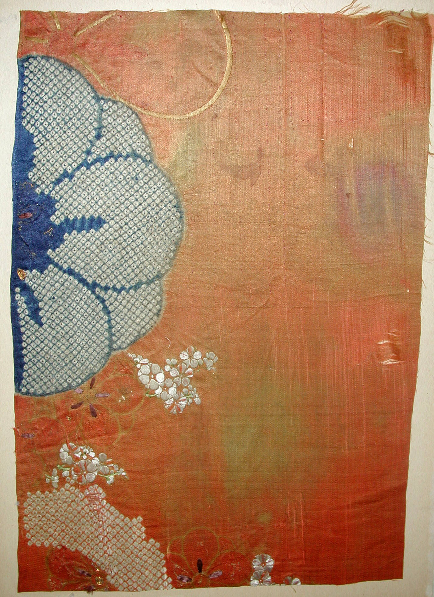 MediumPlain orange silk ground with tie-dyeing (shibori) and embroidery