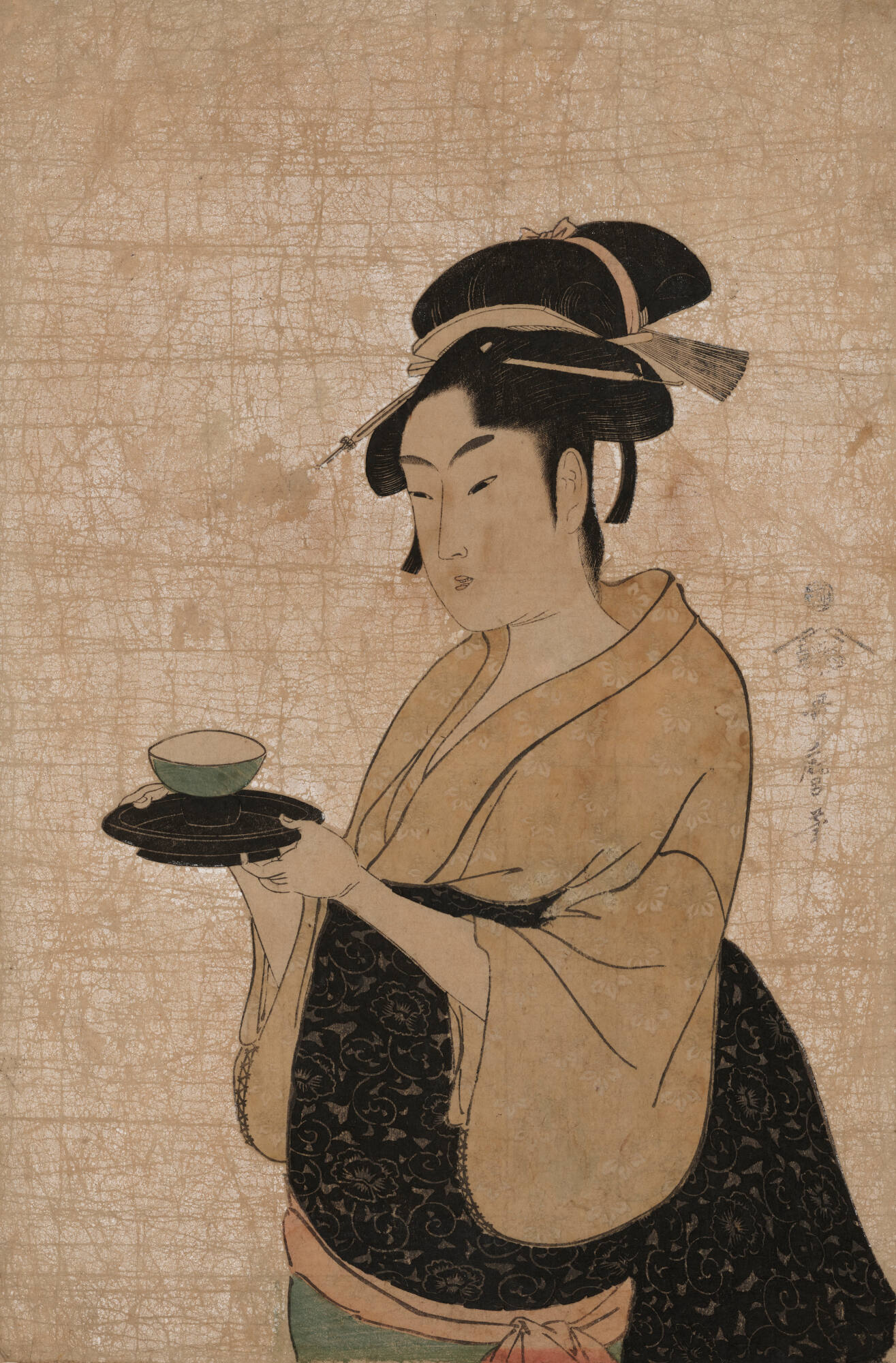 An important artist of Ukyio-e, Kitagawa Utamaro was celebrated for his images of beautiful women, both geisha (courtesan) and ordinary women. His favorites are these sensual, slender beauties engaging in everyday activities.