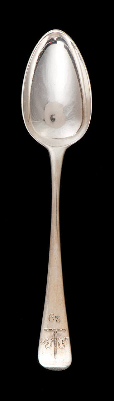 DescriptionOne of a set of 33 silver spoons (from an original set of 70) each individually engraved with a number from 1 to 34 with no. 30 missing. All also engraved with the crest of the City of Chester (snake and sword).