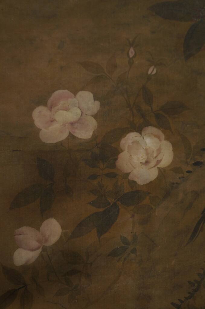 DescriptionChrysanthemums, wild roses and Kuei Hwa (osmanthus). One of a set of twelve hanging scrolls representing flowers of all seasons.