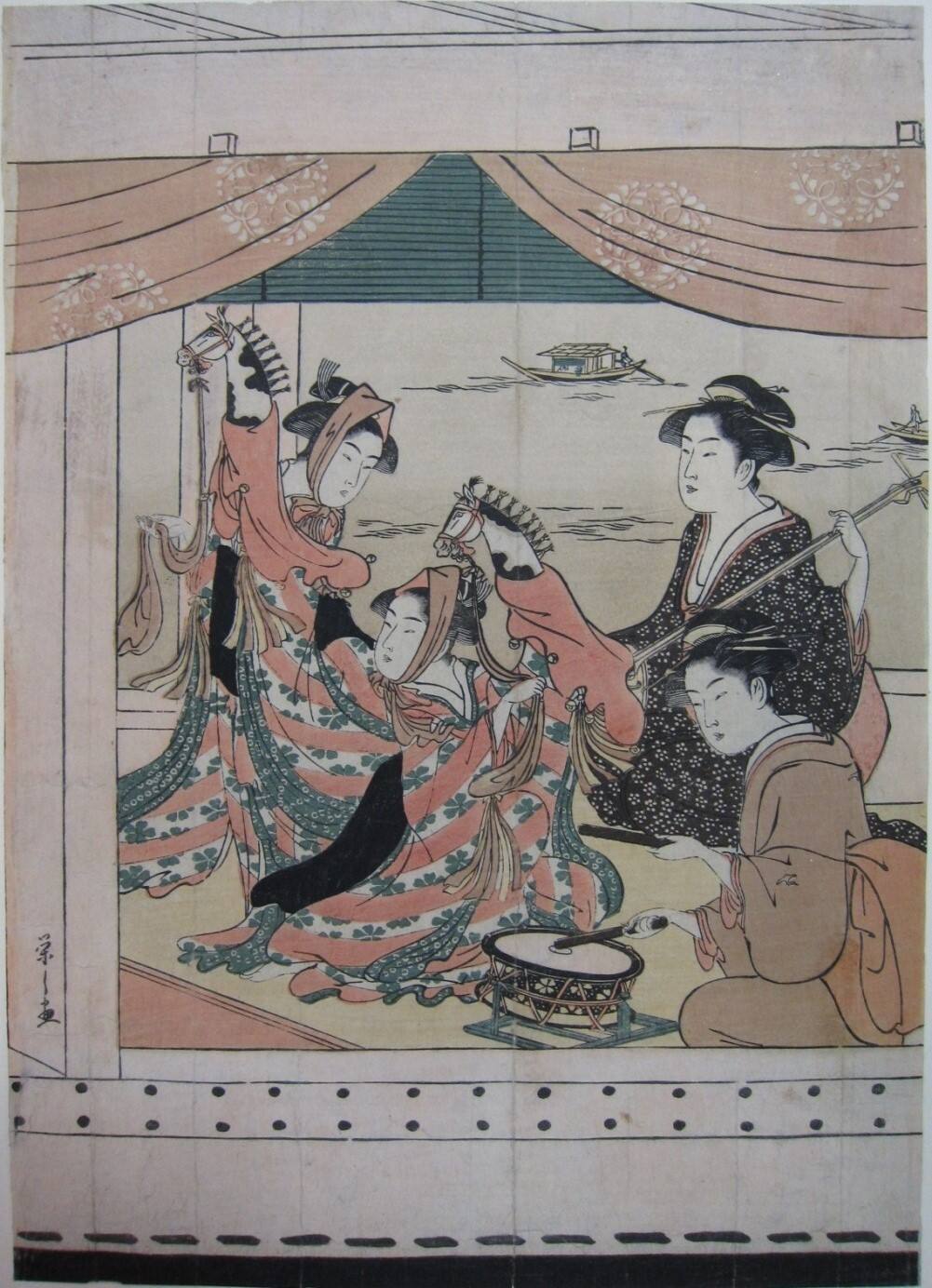 Hosoda Eishi is known for his tall, slender female figures, the images of geisha (courtesans) who worked in the pleasure districts of Japan’s cities.