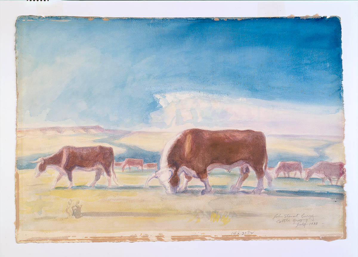 SignedL.r., pencil: "Cattle Grazing John Steuart Curry July 1933"