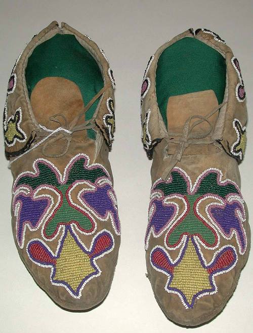 MediumRawhide, native leather, glass beads, muslin, and silk ribbon