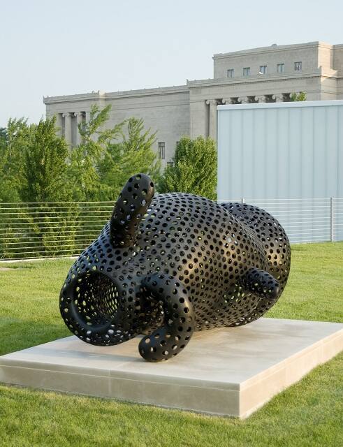 Tony Cragg is one of Great Britain's most esteemed artists. His sculpture, Ferryman, may refer to the operator of a ferry boat, to the fluid "body" of water or to the the molecular structure of matter itself. Its amorphous form extrudes and wraps in upon itself in an endless flow of energy to create a playful dialogue between interior and exterior spaces.