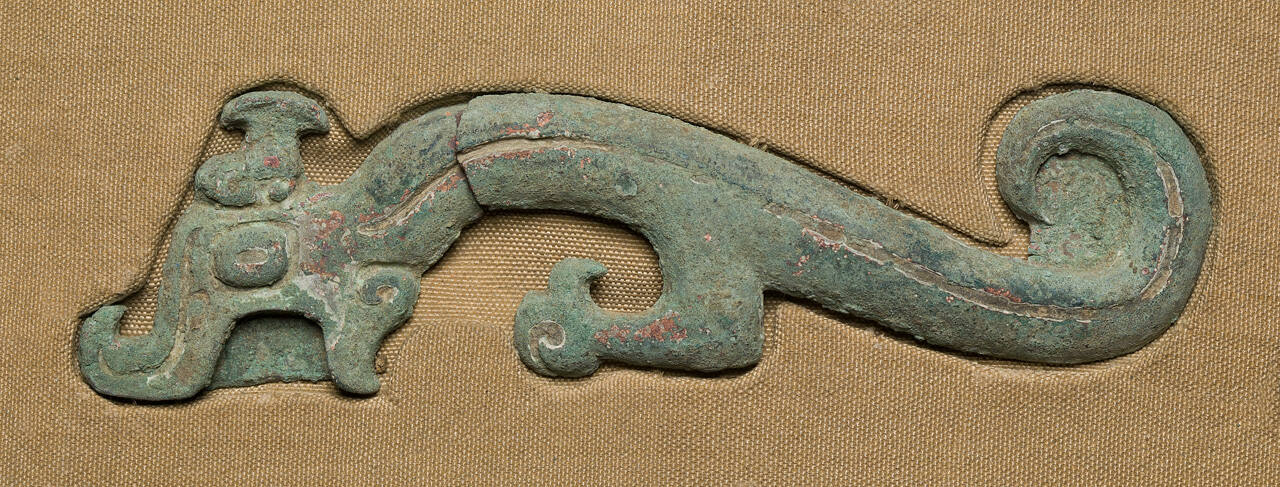 DescriptionHarness or chariot decoration. Formalized dragon, seen in full side view. Line down center of dragon. Green patina.ProvenanceT'ang Hsiao Wu, Peiping (modern-day Beijing), China, by March 30, 1934;