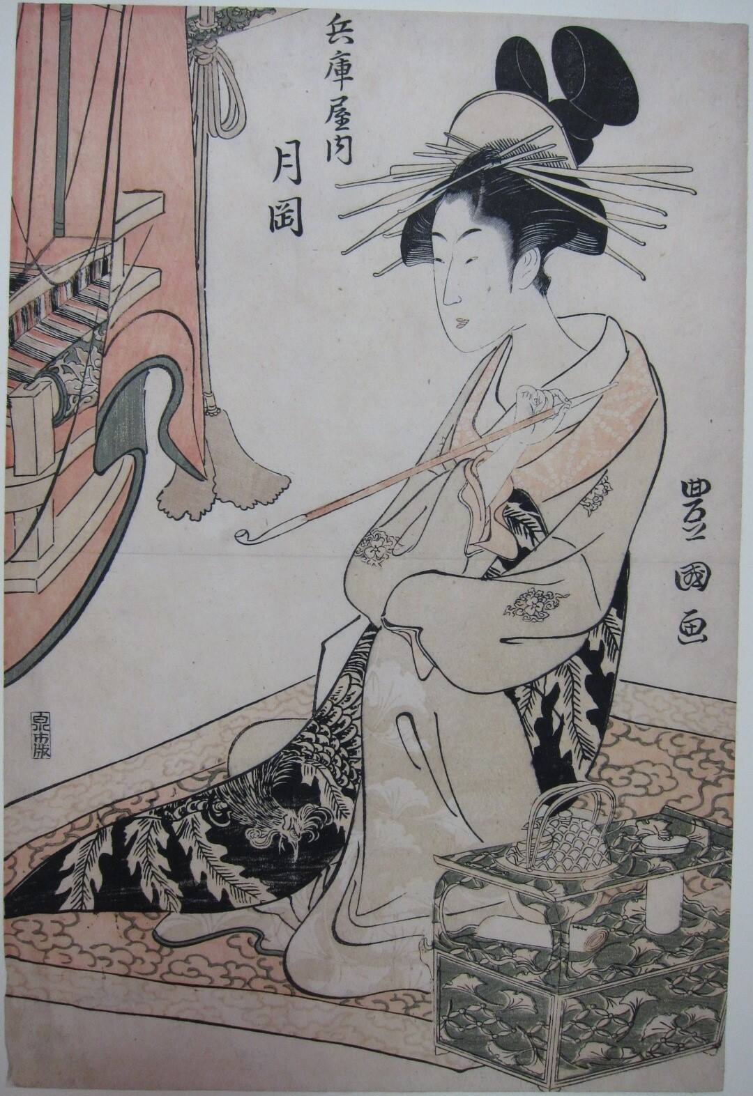 The Courtesan Tsukioka of the Hyogo-ya Holding a Pipe