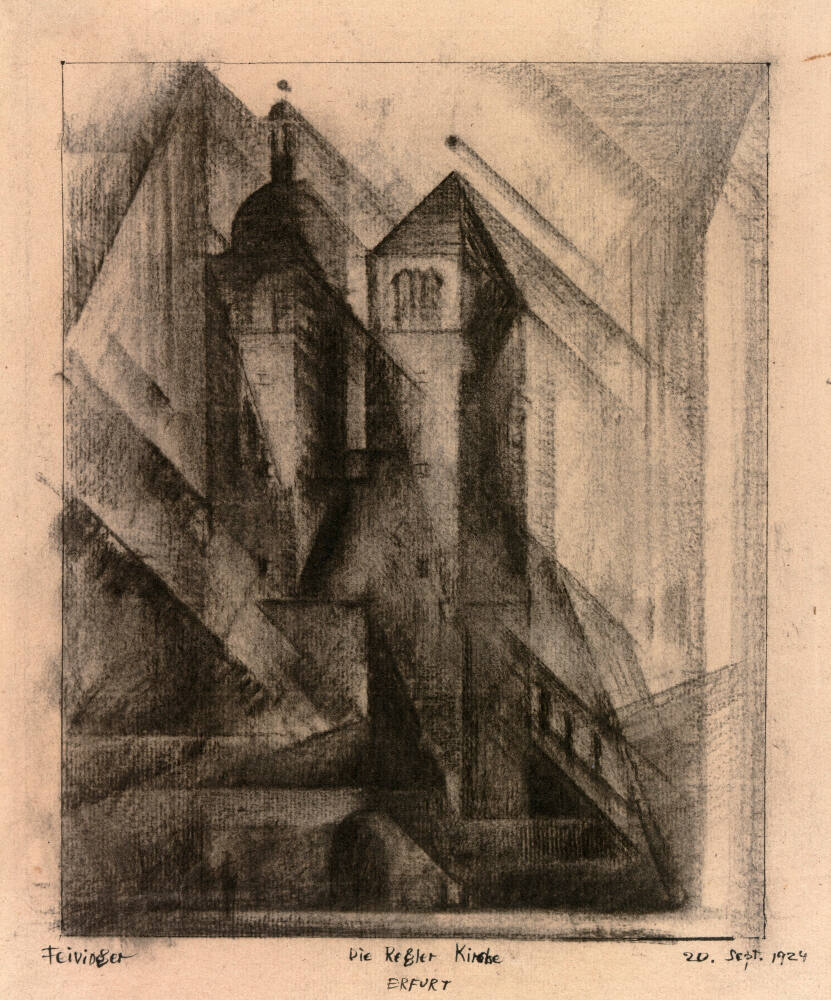 [1] Getty Research Library, Los Angeles, CA, Schaeffer Galleries Records, Box 101, folder 3, Correspondence, 1950-F, copies in Nelson-Atkins curatorial file. An ‘X’ written in the lower left corner of the paper identifies this drawing as having been in the collection of the artist’s wife Julia, but correspondence regarding the sale was directed to Lyonel Feininger. For more about marginalia and inscriptions that appear on Feininger’s works on paper, see Leona E. Prasse, Lyonel Feininger: A Definitive Catalogue of the Graphic Work (Cleveland, OH: The Cleveland Museum of Art, 1972), 32, 268-71.