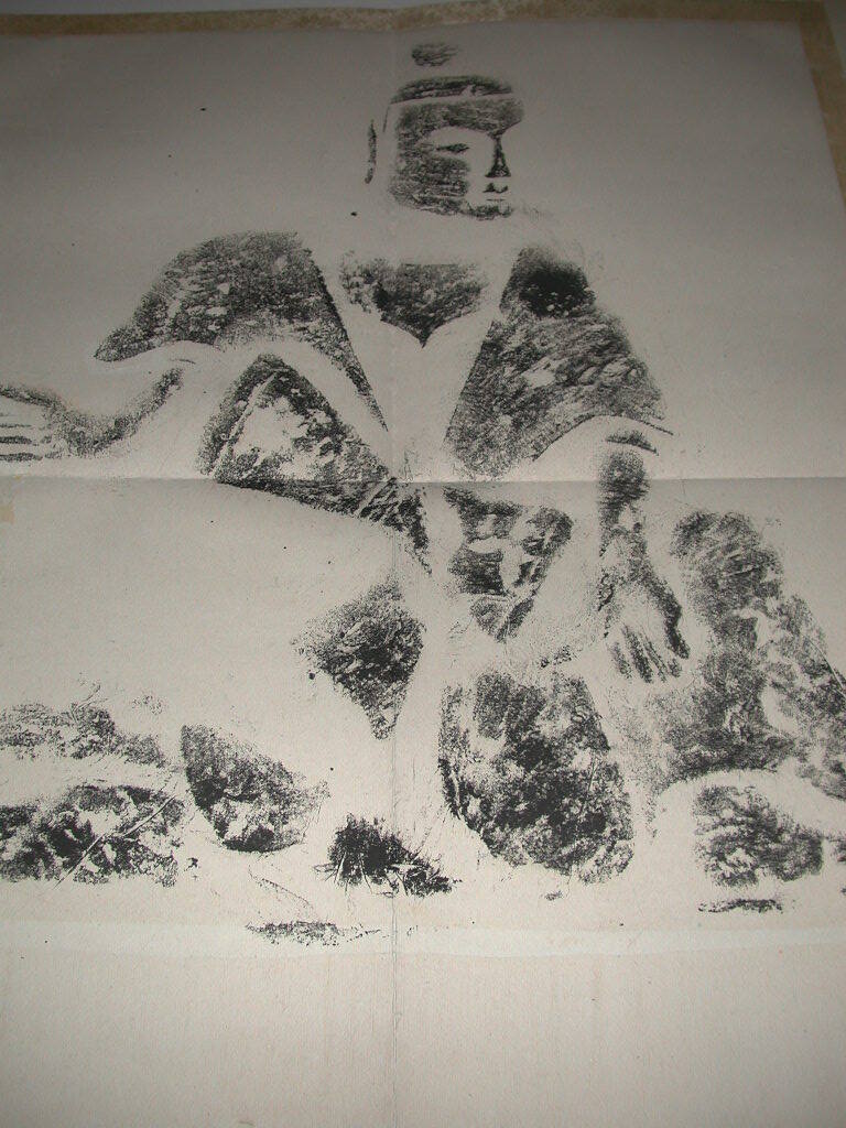 DescriptionGuan-Yin/Buddha/Seated Male Figure. Box labeled "Kung Hsien". Rubbing taken from Kung Hsien (Gong Xian) caves.