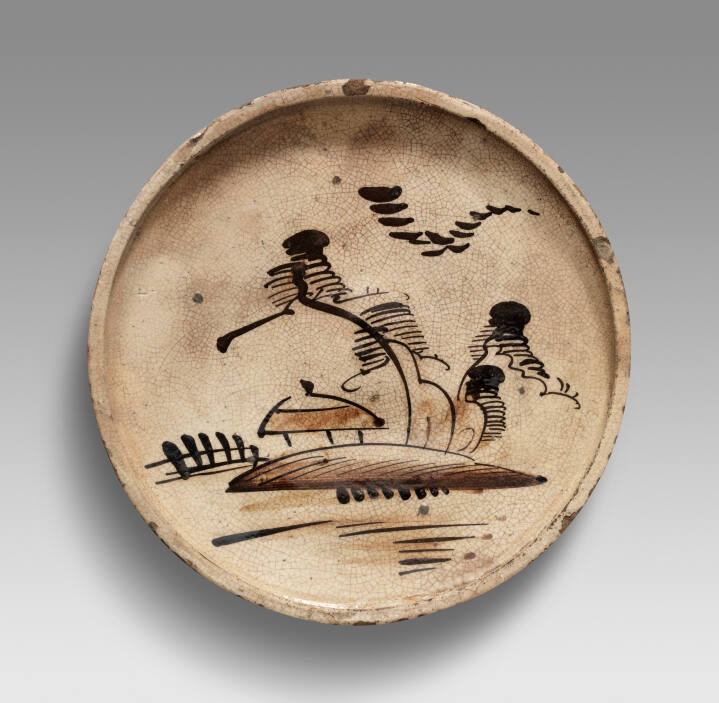 Gallery LabelOil plates were used to catch oil drippings and soot from the burnt wick of oil-burning lamps. A lamp would have hung suspended above the plate from a four-sided, paper-covered wooden frame. Seto kilns were the main producer of these widely distributed plates in the 18th and 19th centuries.