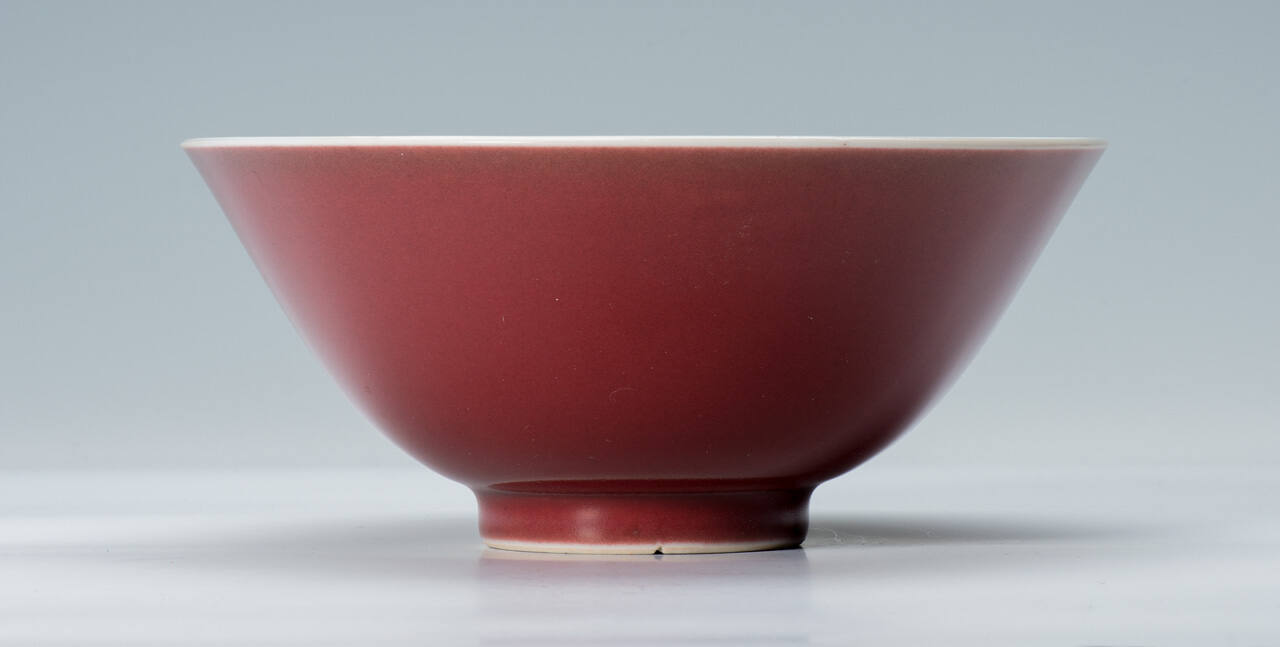DescriptionOne of a pair of bowls glazed liver red on the exterior, white on the interior.