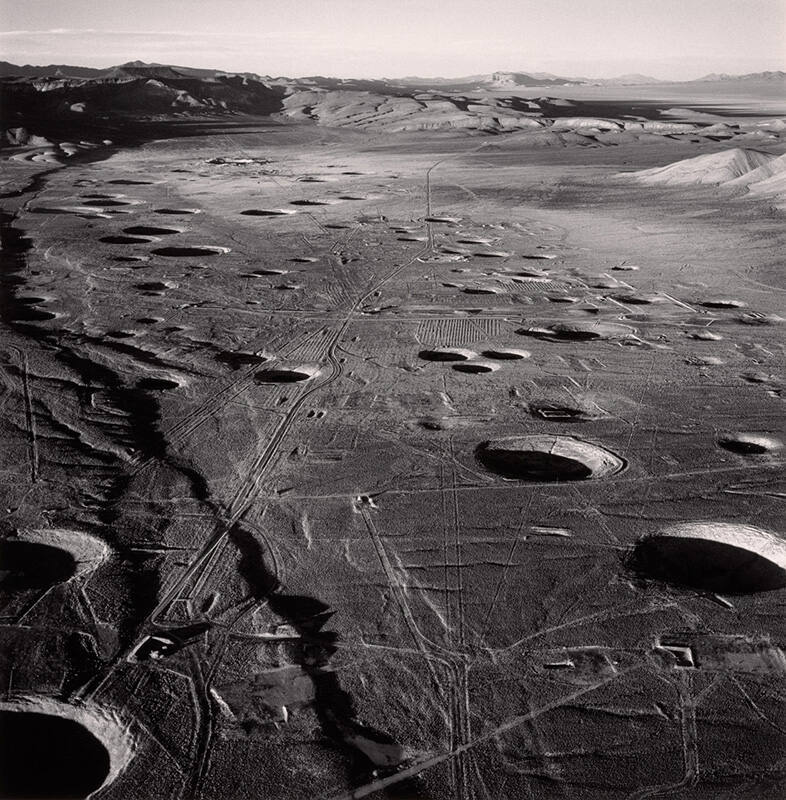 DescriptionAerial image of subsidence craters scattered among the cracked landscape of Yucca Flat.ProvenancePurchased from Pace/MacGill Gallery by Hallmark Cards, Inc., Kansas City, MO, 1998;