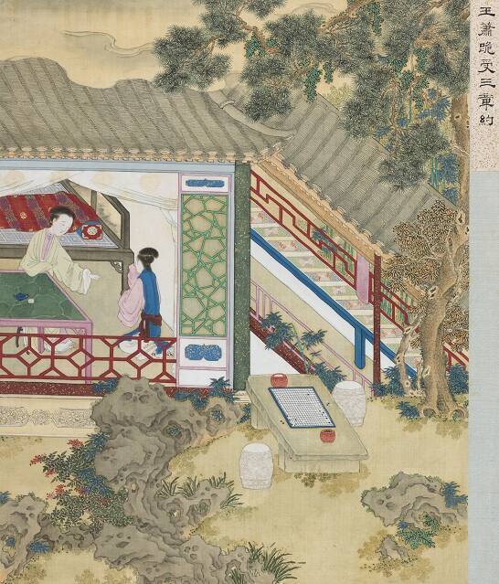 DescriptionThe twelve album leaves were painted on silk in rich colors and meticulous details. Each bears a cartouche on the upper right of the mount. The inscription identifies each episode from the popular novel, the Jinpingmei (Gold Vase Plum). Eleven of the twelve leaves display figures in architectural settings, and one leaf is dominated by a river landscape.