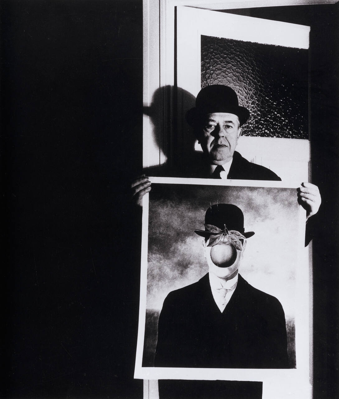 Rene Magritte with his picture "The Great War, Brussels"