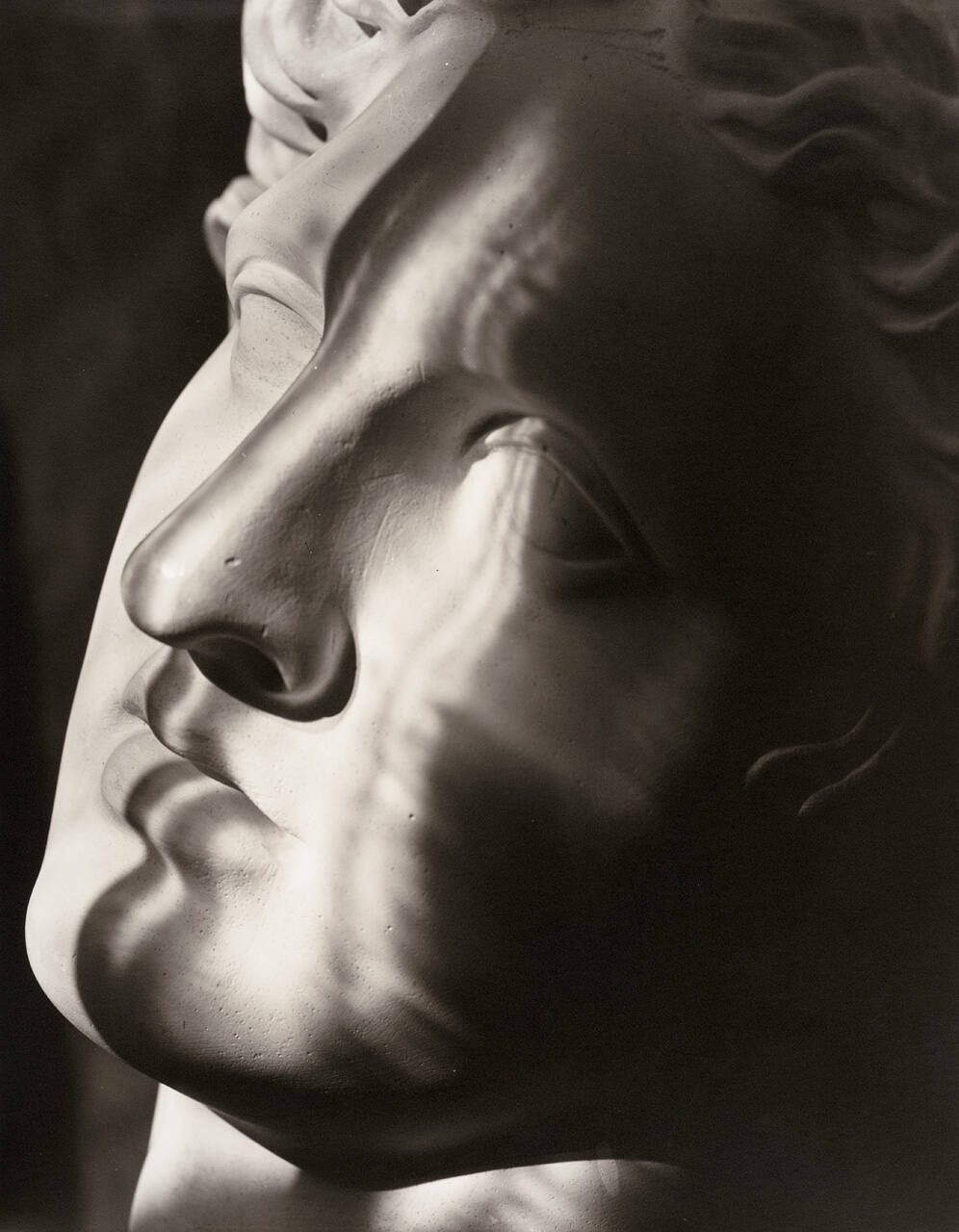 DescriptionGelatin silver print. Image of statue's face; shadows across it.Copyright© Carlotta M. Corpron