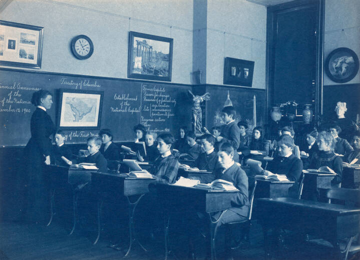 In 1899, Frances Benjamin Johnston spent six weeks photographing the schools of Washington D.C., producing a total of 700 views. A social issue of vital importance at the turn of the 20th century, education was widely regarded as the key to establishing moral and civic virtue. A well behaved and educated child was expected to become a productive future member of society. With this in mind, Johnson's carefully composed views portray classrooms as models of order and civility.